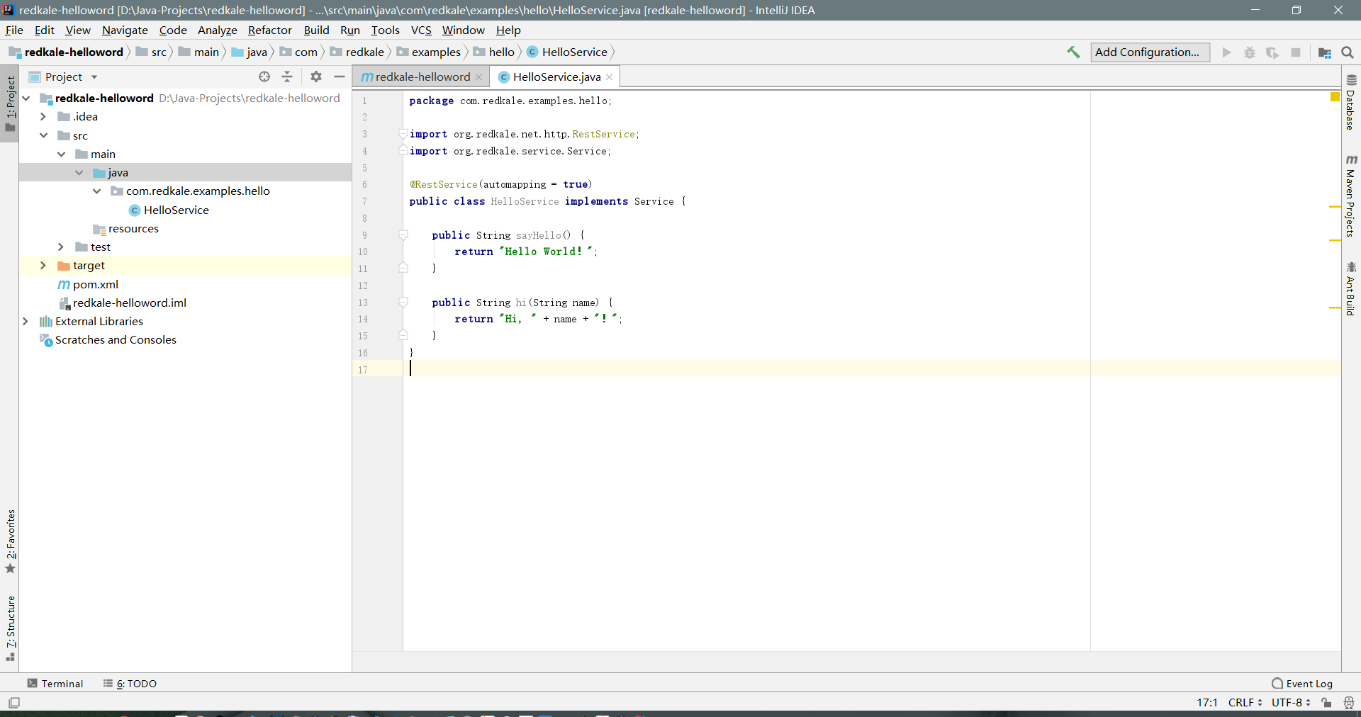 Redkale 入门教程 01 -- Hello Word!(IntelliJ IDEA Maven版)