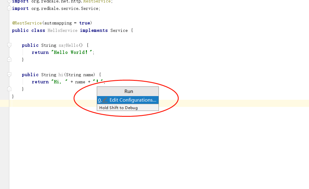 至此,一个简单的Hello服务就开发和调试完成了。可以看出,代码简单很多,不需要太多配置、maven和其他依赖包。